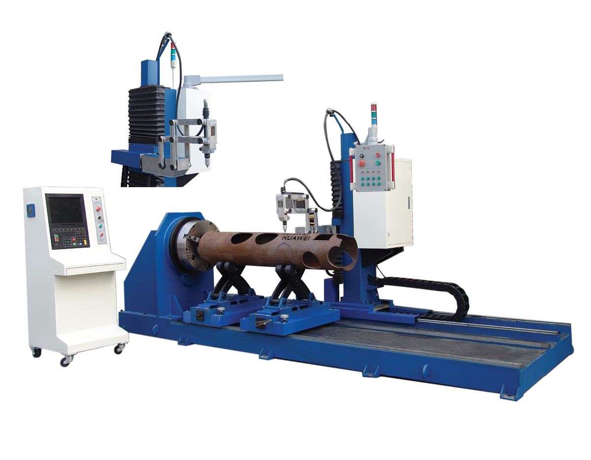 管道數控相貫線切割機就是用數字程序驅動機床運動,隨著機床的運動,隨機配帶的切割工具對管道進行切割。數控管道相貫線切割機是包括機械、能源介質供應和電氣、儀表及其控制等自成系統配套的機電一體化設備,是管道加工中心為解決管道的切割與裝配,提高管子的制作質量,對管子進行加工的設備。