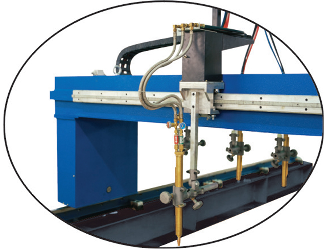 為滿足鋼結(jié)構(gòu)、建筑業(yè)、鍋爐等行業(yè)批量加工條形板的需求,我公司專門為其開發(fā)的一種利用燃氣和氧氣作為切割氣體的高效專用設(shè)備(多頭直條切割機)。本機器具有結(jié)構(gòu)緊湊、操作方便、使用安全、切割精度高、生產(chǎn)效率高、材料利用率高、等優(yōu)點。以及相對低的設(shè)備投資,正為越來越多的企業(yè)所重視,在生產(chǎn)中得到越來越廣泛的應(yīng)用。該切割機的部件構(gòu)成主要有:機架、縱、橫向驅(qū)動裝置和導(dǎo)軌、割炬組件、氣路系統(tǒng)、電氣系統(tǒng)以及軟管的縱、橫向拖曳裝置等。