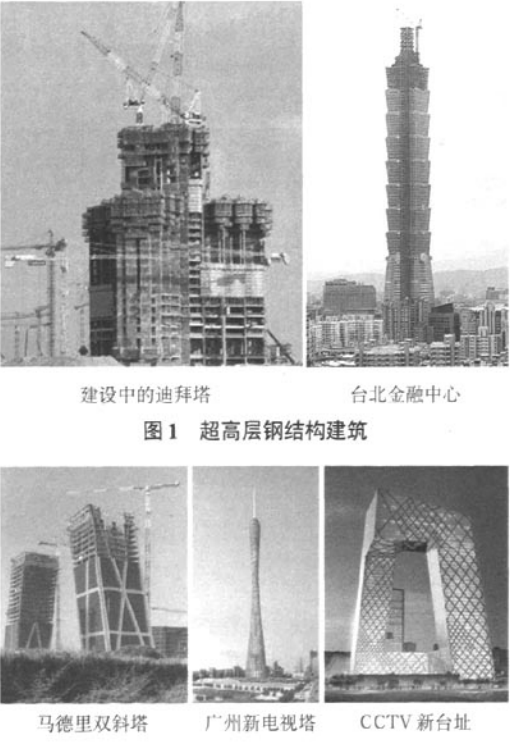 超高層建筑是人類征服自然,不斷取得進(jìn)步的重要標(biāo)志,是現(xiàn)代科學(xué)技術(shù)發(fā)展的結(jié)晶,也是一個國家科技發(fā)展水平和綜合實力的集中體現(xiàn)之一。因此無論是發(fā)達(dá)國家,還是發(fā)展中國家都把興建超高層建筑作為展示社會發(fā)展成就的重要手段。而超高層建筑通常采用鋼結(jié)構(gòu)作為主要構(gòu)成部分,因此超高層建筑一般都是超高層鋼結(jié)構(gòu)。現(xiàn)代超高層建筑起源于美國,已有110年的發(fā)展歷史,超高層建筑的興建不但具有顯著的經(jīng)濟(jì)效益和社會效益,能夠展現(xiàn)一個時代、~個國家的科技發(fā)展成就,而且可以極大地促進(jìn)相關(guān)領(lǐng)域科技的發(fā)展。因此目前興起了超高層建筑建設(shè)的新高潮。不僅高度越來越高,如高達(dá)492m的上海環(huán)球金融中心,508m的臺北國際金融中心,阿聯(lián)酋超過700m高的Burj Dubai大廈(迪拜塔),圖l。而且超高層建筑造型也更加多樣化,扭轉(zhuǎn)的廣州新電視塔和傾斜的中央電視臺新臺址建設(shè)工程就是其中典型的代表。