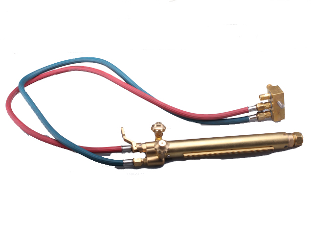 (6)將割炬插入割炬夾持器,讓割炬齒條正確地嚙合割炬夾持器的調節齒輪。擰緊割炬夾持器的翼型螺母以牢固地夾持割炬,但是允許用調節旋鈕垂直調整割炬??墒褂秒p管或三管割炬。將歧管檔塊