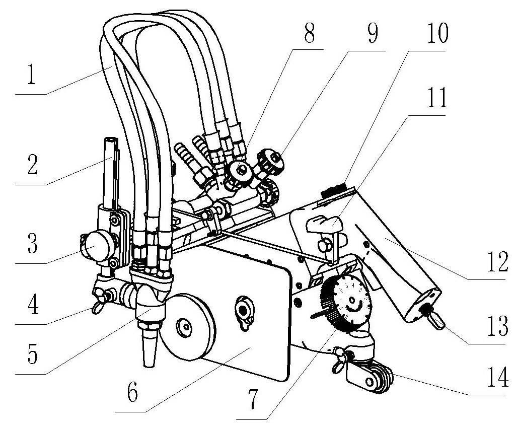 旋轉手輪,可調節割炬與鋼板之間的垂直距離。