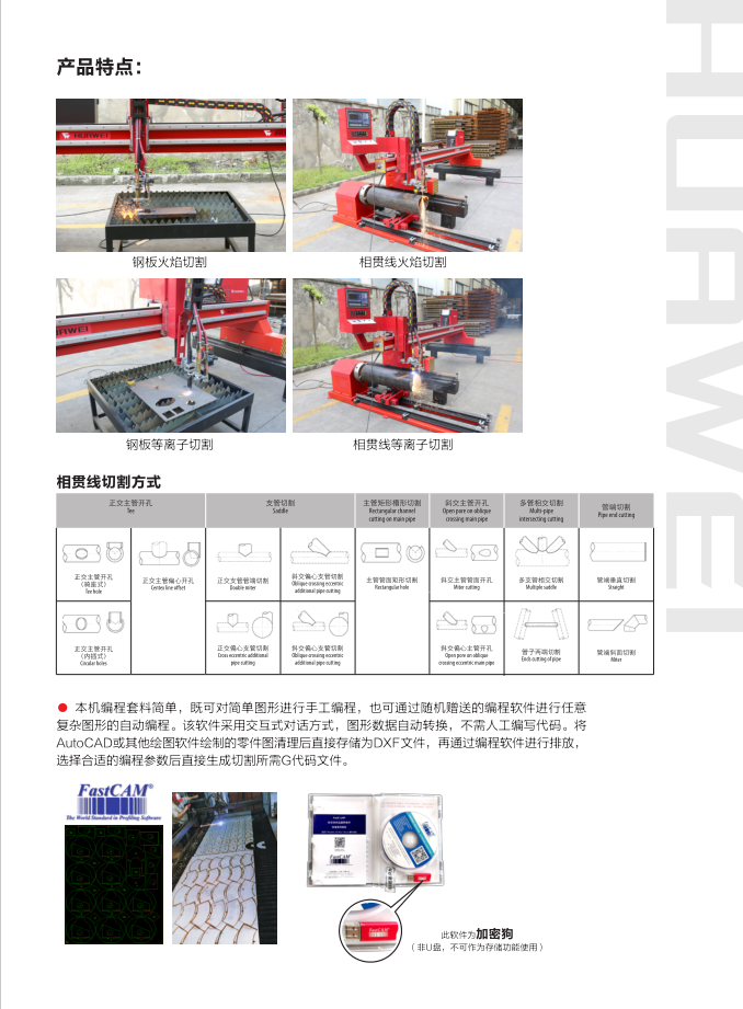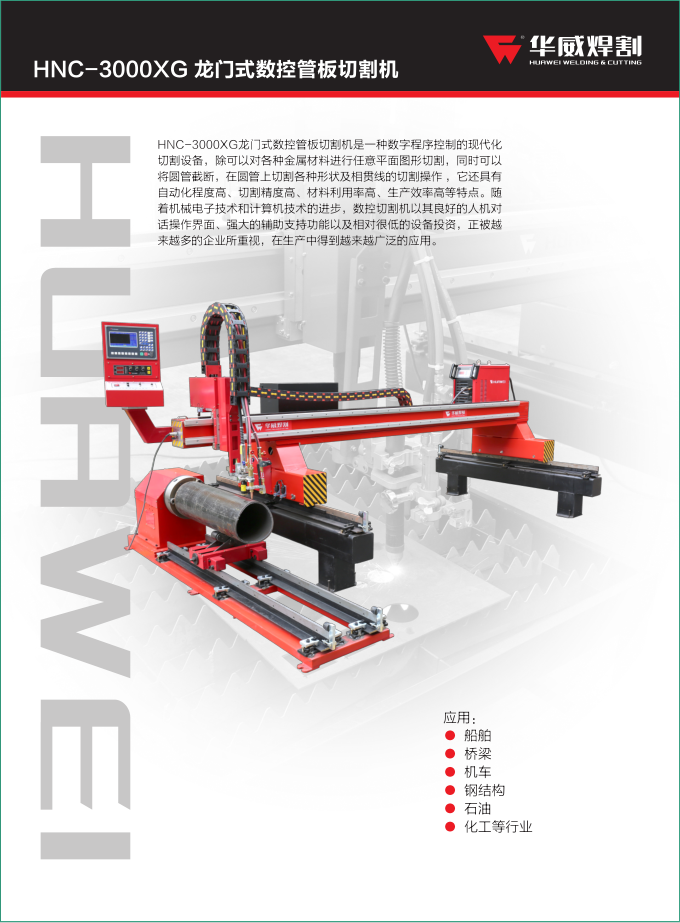 HNC-3000XG龍門式數(shù)控管板切割機是一種數(shù)字程序控制的現(xiàn)代化切割設(shè)備,除可以對各種金屬材料進行任意平面圖形切割,同時可以將圓管截斷,在圓管上切割各種形狀及相貫線的切割操作 ,它還具有自動化程度高、切割精度高、材料利用率高、生產(chǎn)效率高等特點。隨著機械電子技術(shù)和計算機技術(shù)的進步,數(shù)控切割機以其良好的人機對話操作界面、強大的輔助支持功能以及相對很低的設(shè)備投資,正被越來越多的企業(yè)所重視,在生產(chǎn)中得到越來越廣泛的應(yīng)用。